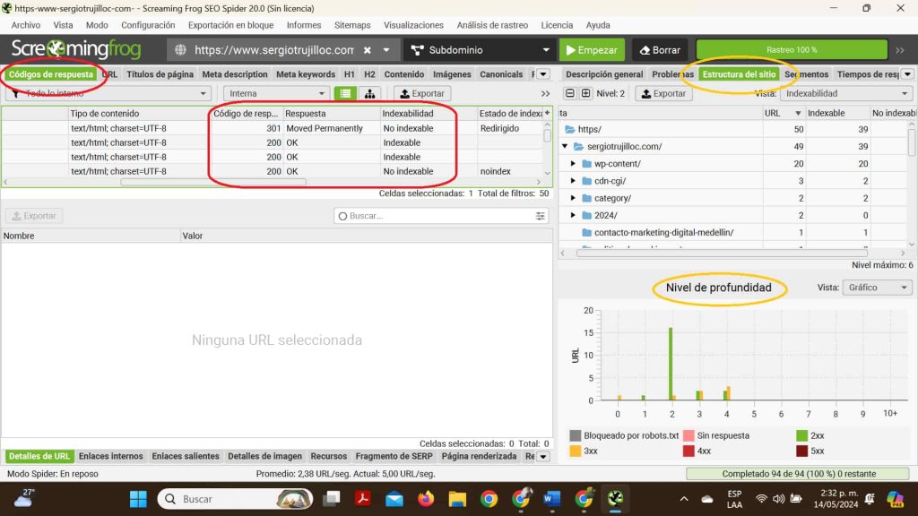 A continuación, te explico cómo usar Screaming Frog para detectar y cuantificar problemas específicos relacionados con los títulos y meta descripciones de las URLs de tu sitio: